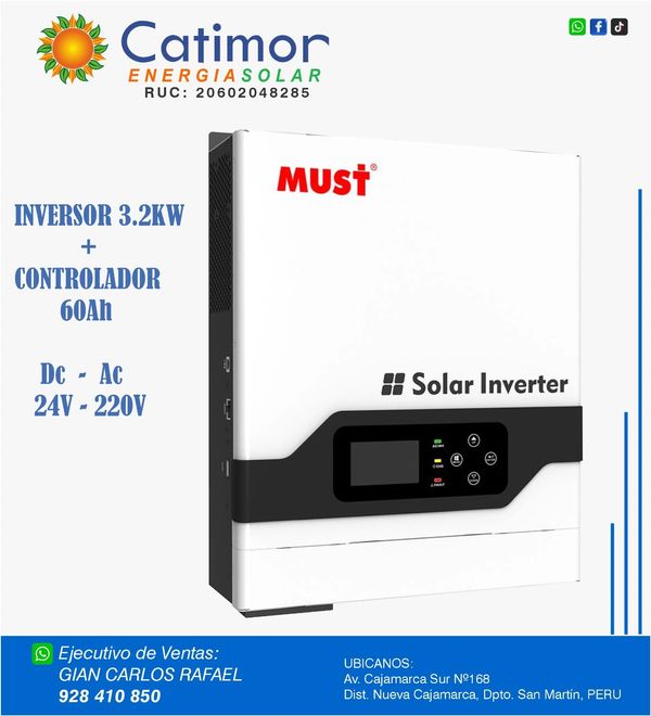 Inversor de Onda Pura 3200w perfecto en instalaciones aislada. Incorpora un controlador de carga MPPT 60Ah, lo que permite el funcionamiento eficiente en cualquier momento del día.